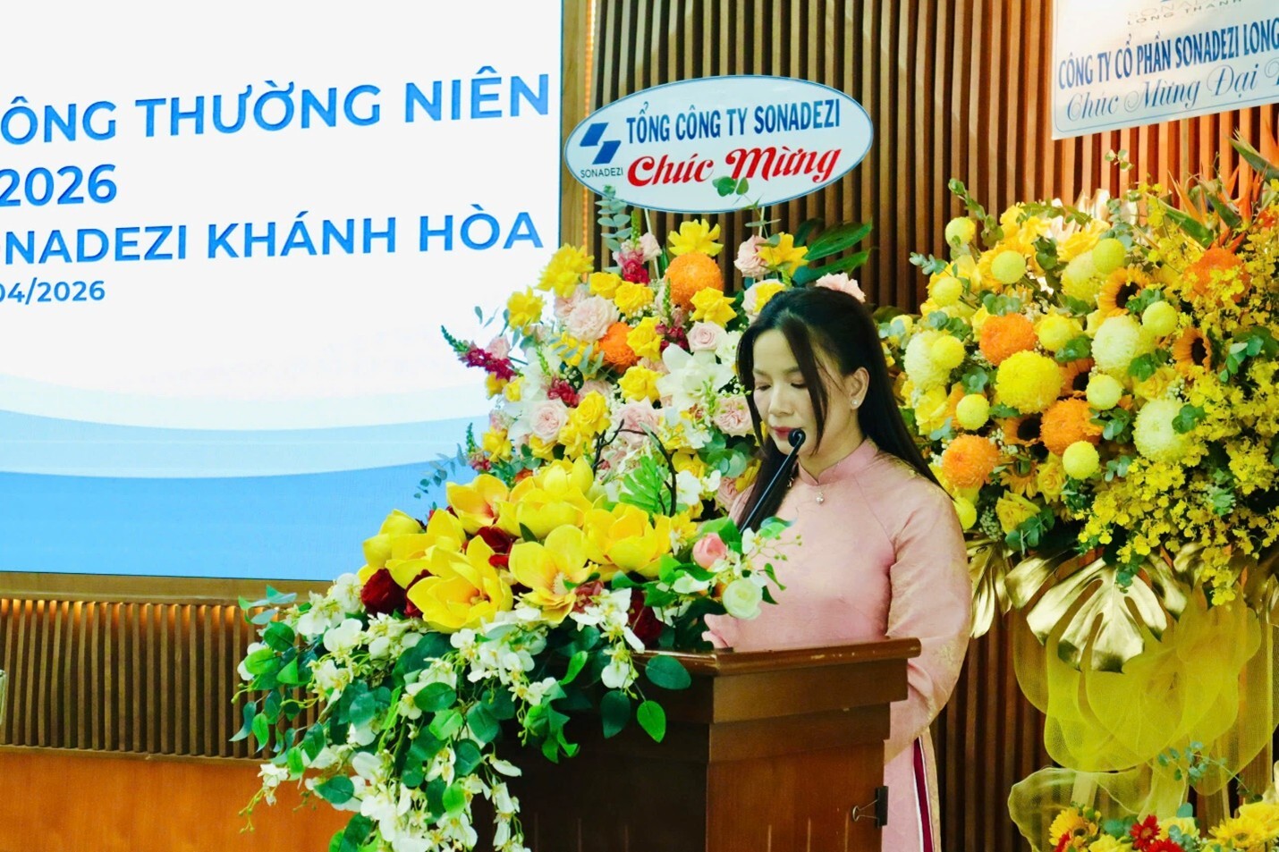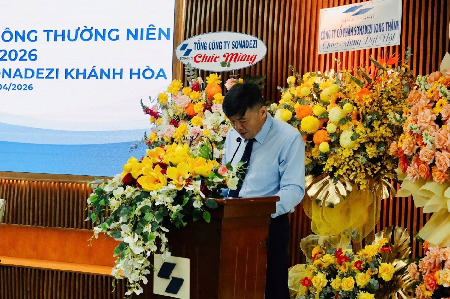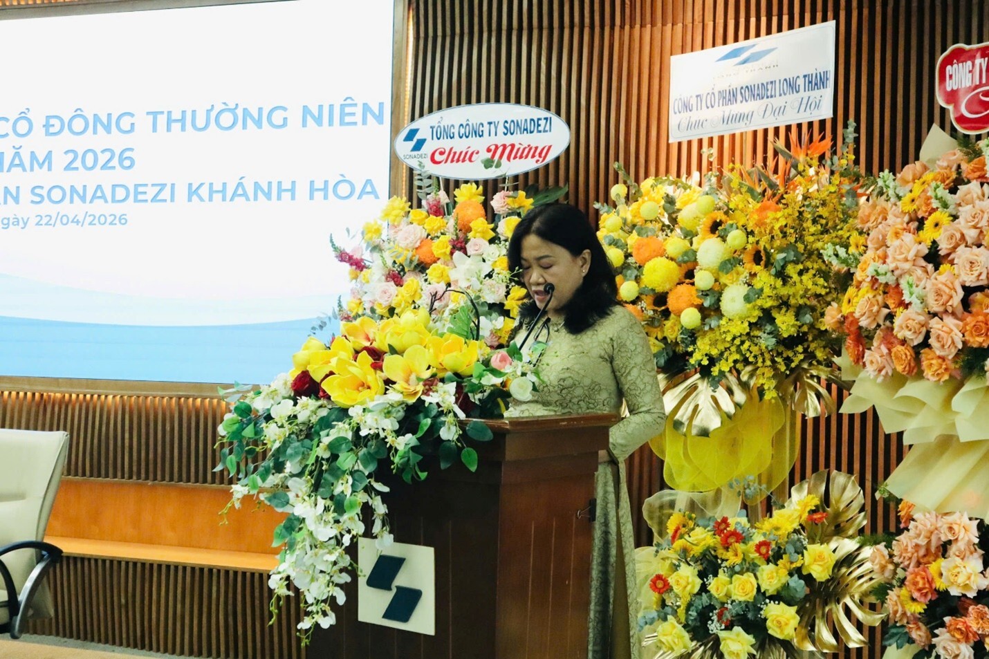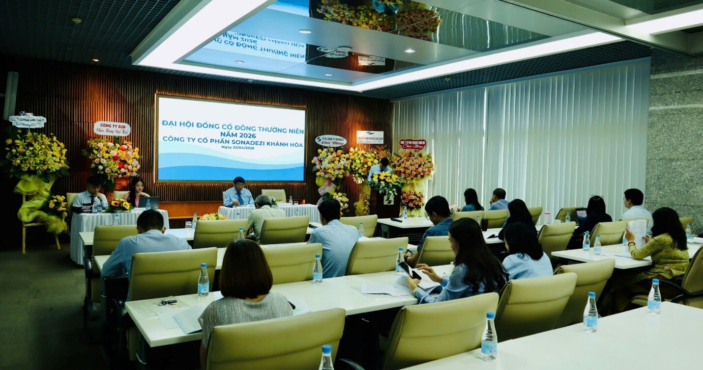 Vào lúc 8g30 ngày 22 tháng 04 năm 2026, Công ty Cổ phần Sonadezi Khánh Hòa đã tổ chức cuộc họp Đại hội đồng cổ đông thường niên năm 2026 tại tại phòng 3.18 Tầng 3, Cao Ốc Sonadezi, Số 1 đường số 1, phường Trấn Biên, tỉnh Đồng Nai.
